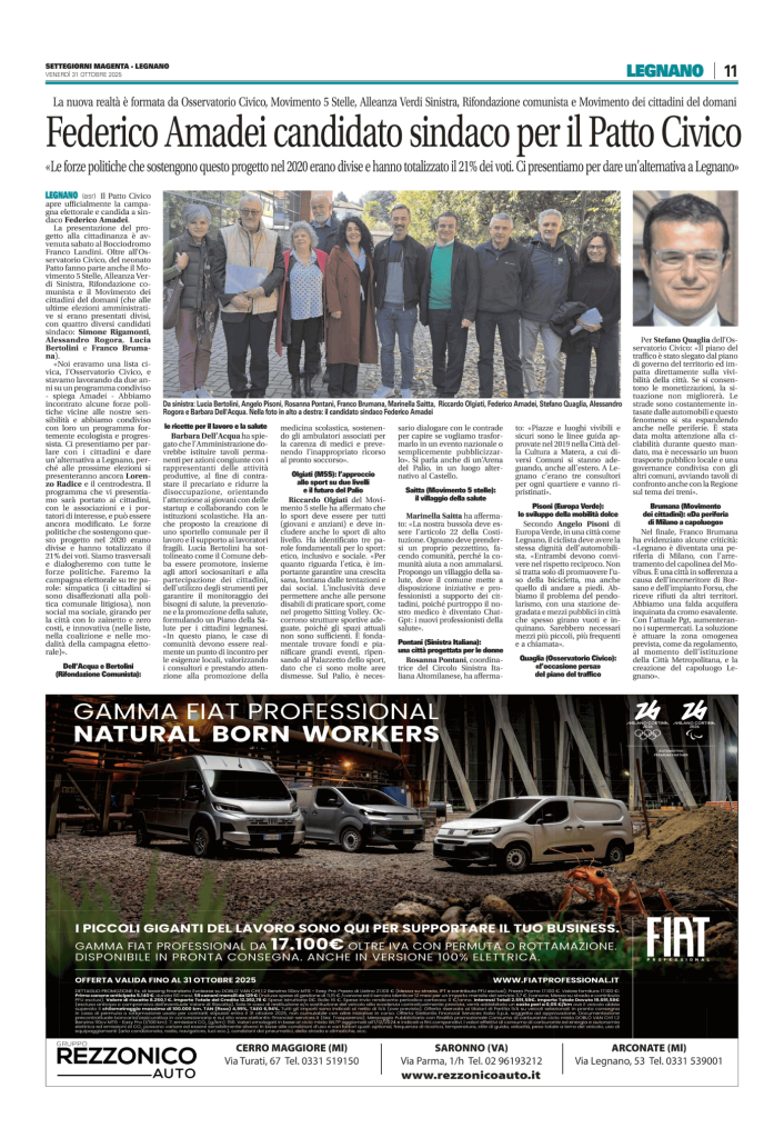 Il campo largo a Legnano lo fa il Patto Civico. Che candida a sindaco Amadei